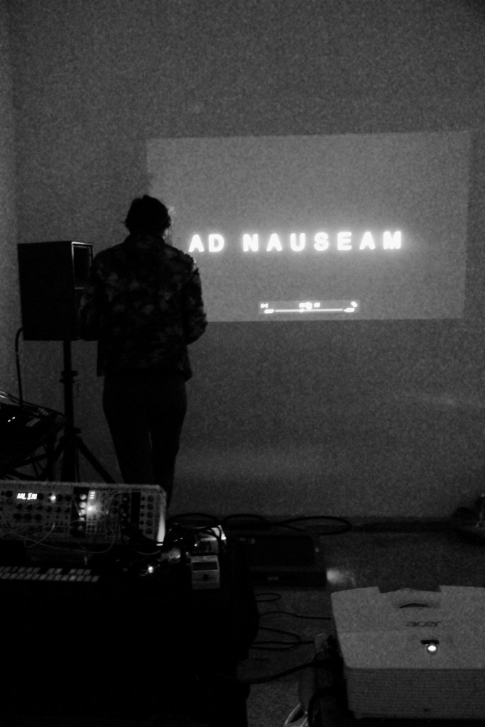 A cut-up of technoscience discourses diffracted with evolutionary anthropology and biopolitical philosophy merges into a multimedia performance interweaving art historical and technofuturistic video material, visual poetry and spoken word, live improvisation (clarinet, saxophone, modular synthesizer) and electronic composition. A powerful, minimalist, in-your-face “lived dystopia” conjoining art, science, and (cyber)punk.