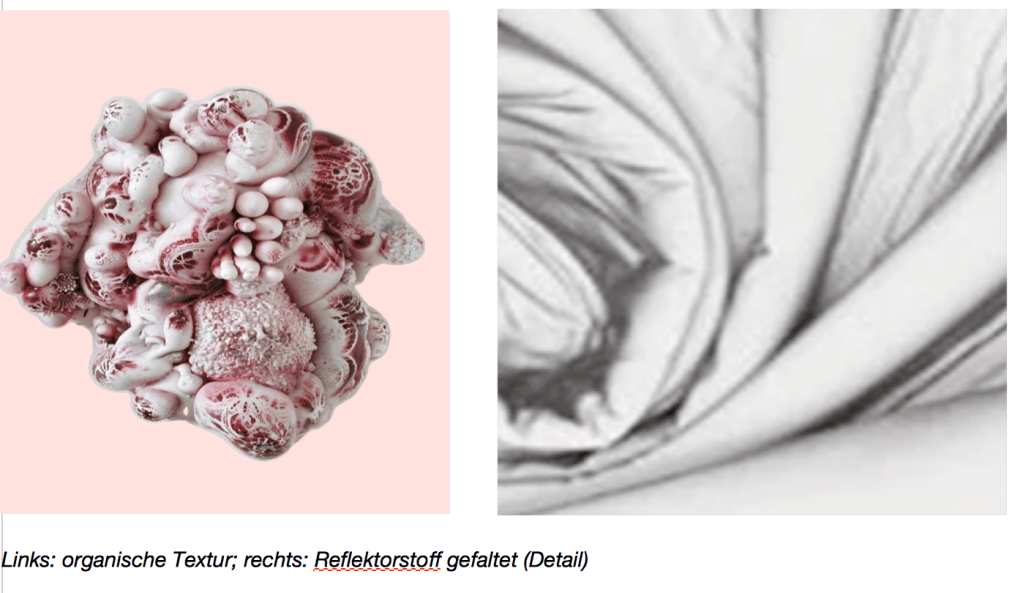 Für WANDERING WOMBSĀ will ich meine Auseinandersetzung mit textilen KƶrperrƤumen und feministischen ErzƤhlungen in die Gestaltung von Bühne und Kostüm einbringen. Meine Arbeit zielt auf die Transformation des Kƶrpers durch Stoff, Form und Textur und reflektiert, wie Kostüm als durchlƤssige Grenze zwischen Mensch und Umgebung wirkt. Diese Umgebung soll in WANDERING WOMBS durch Lichtprojektionen an einen Uterus erinnern ā wie der begehbare Uterus im UNIVERSUM Museum in Bremen, wo ich als Kind oft war und wo ich regelmƤĆig eingeschlafen bin. Die Performerinnen erscheinen in zwei HƤuten, einer ƤuĆeren, dem Exo-Kostüm (āWombā) aus semitransparentem Stoff und einer inneren, dem kƶrperanliegenden Kostüm aus Reflektorstoff. Der Kƶrper wird durch diesen Stoff, der normalerweise für Outdoor und Sicherheitskleidung verwendet wird, zum Reflexionsinstrument im doppelten Sinne: Er reflektiert Licht und er reflektiert die an ihn gerichteten Zuschreibungen. Der Stoff der Wombs ist etwas dicker, aber trotzdem formbar durch die sich darin bewegenden Performerinnen. Durch Lichteinsatz wird er entweder transparent und gibt den Blick auf die Kƶrper der Performerinnen frei ā oder opak und umhüllt sie wie ein Uterus. Dem dramaturgischen Konzept folgend werde ich die Kostüme von einem biologischen zu einem androiden Look führen, weil der Procreation Robot, obwohl geschlechtlos und genderneutral, ironischerweise als *weiblicher Roboter gedacht und illustriert wird. Dabei soll Humor eine Rolle spielen.